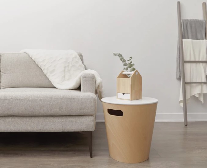 Møblet måler 40 x 28 x 41 cm og tilbyder god opbevaringsplads til større husholdningsgenstande som tæpper.